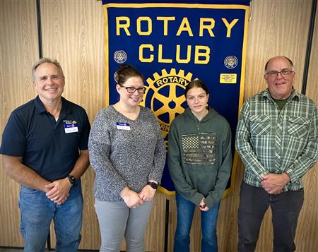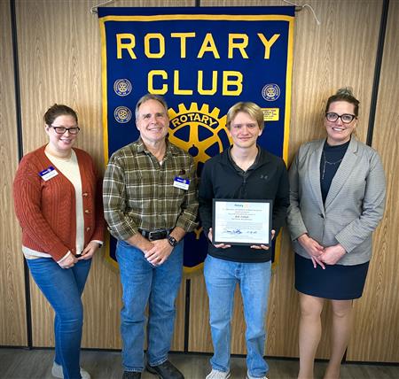Madison (Mia) Henry of Brasher Falls Central School District, a student in the Health Careers program at BOCES Seaway Career & Technical Education Center, is the February recipient of the Potsdam Rotary Club’s “Rev. William R. and Crystal E. Cuthbert Vocational Excellence Award Sponsored by Brookfield Renewable U.S.” At a Rotary luncheon honoring Henry, she met with Potsdam Rotarians and was commended for her academic excellence by Seaway Tech instructor Joanne Carkner. Left to right: Potsdam Rotary Vocational Service Chair Duane Pelkey, Carkner, Henry, and President Sunday Smith.